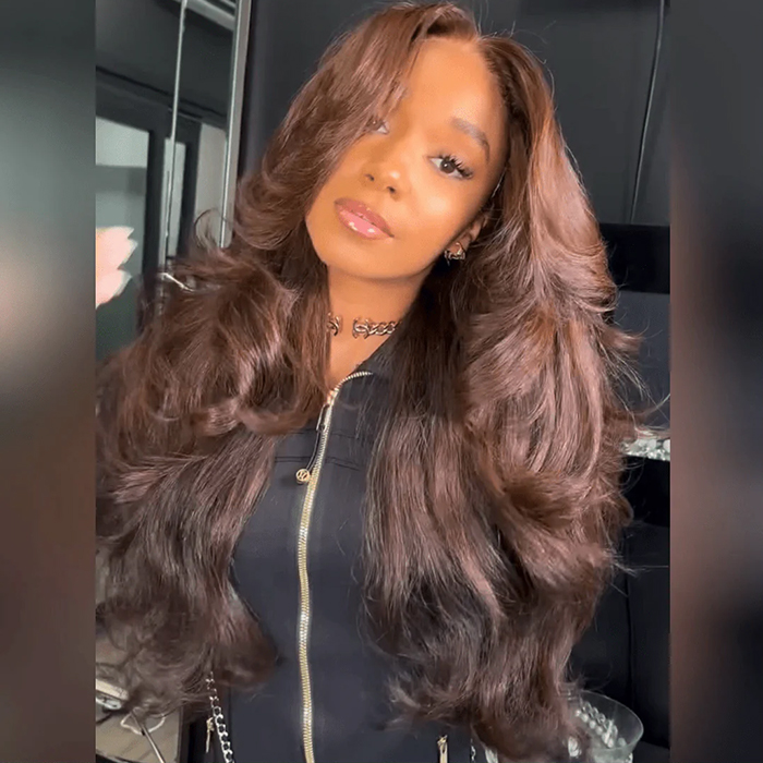 Butterfly Haircuts Dark Brown Body Wave 6×5 Glueless Wig Pre-layered Face Framing Wig 250% Density