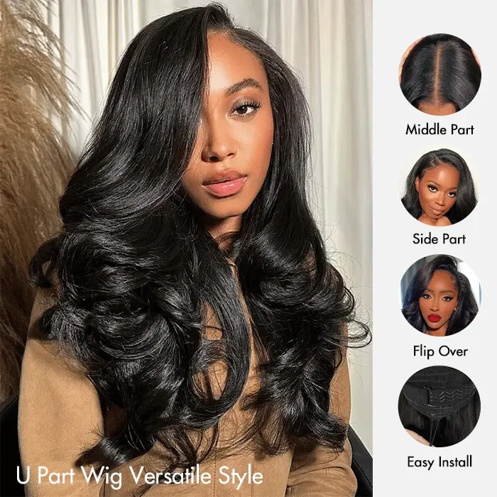 Butterfly Layered Hair Cuts Body Wave U Part Wig Human Hair Wigs 180% Density