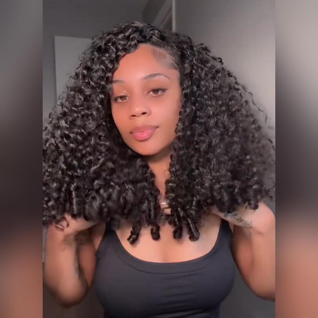 Burmese Curly Half Wig Flip Over Quick Weave Glueless Install 100% Natural Hairline