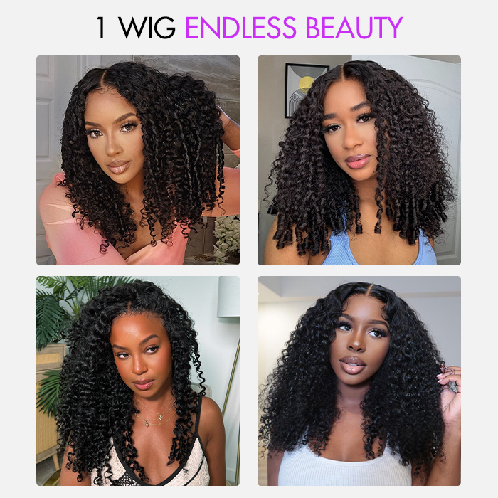 Burmese Curly Wig With Finger Coil Ends Pull & Go Drawstring Glueless Wig Full Ends