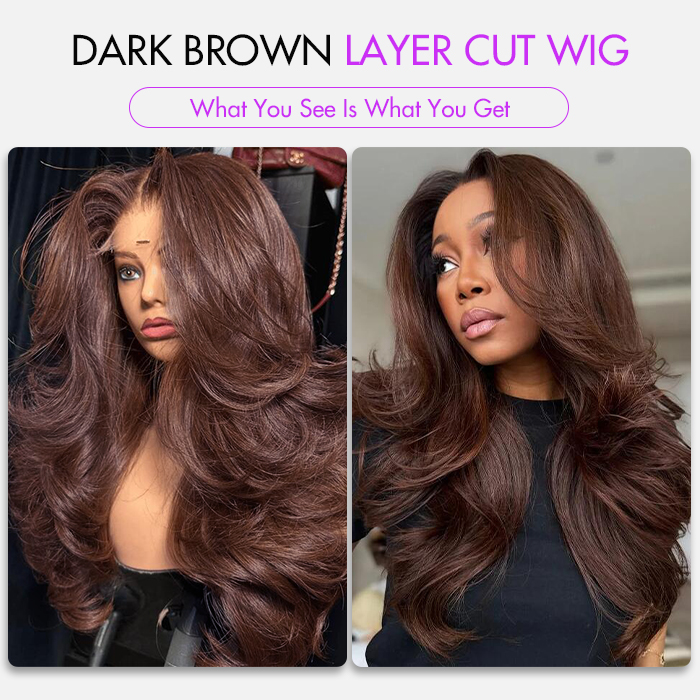 30 reviews for Dark Burgundy/Dark Brown Butterfly Haircuts Loose Wave 6×5 Glueless Wig Pre-Layered Face Framing Wig