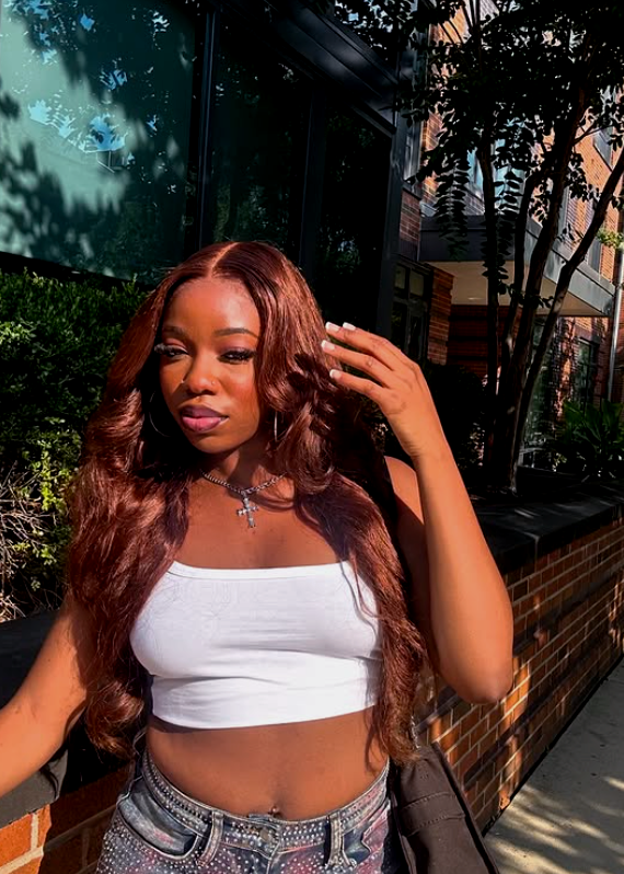 Reddish Brown Glueless Wig Brazilian 13×4 Body Wave Full Frontal HD Lace Wig 180% Density