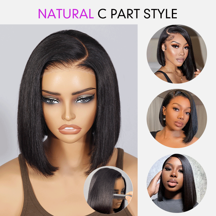 Super Double Drawn Bone Straight Bob Wig Blunt Cut 6×5 Natural C-Side Part Glueless Straight Bob Wig Vietnam Hair