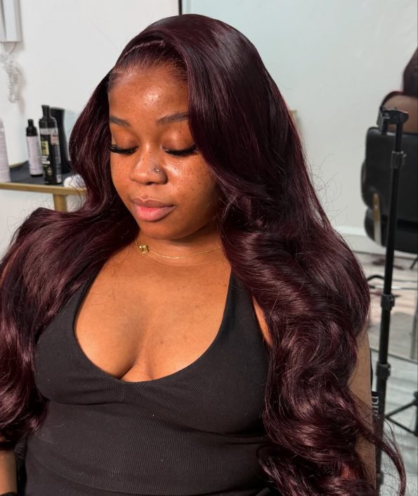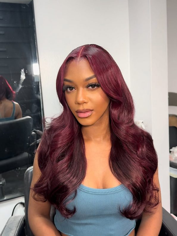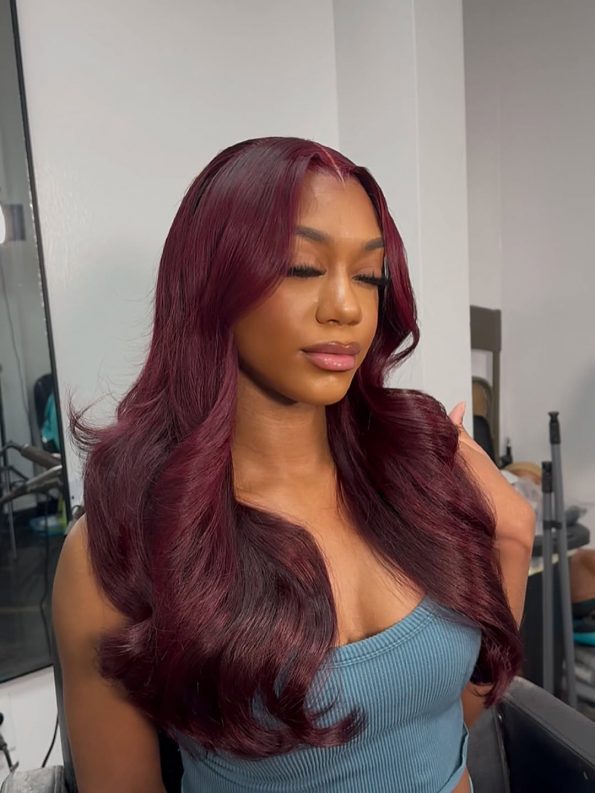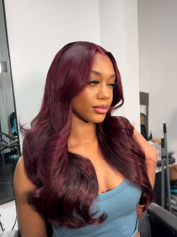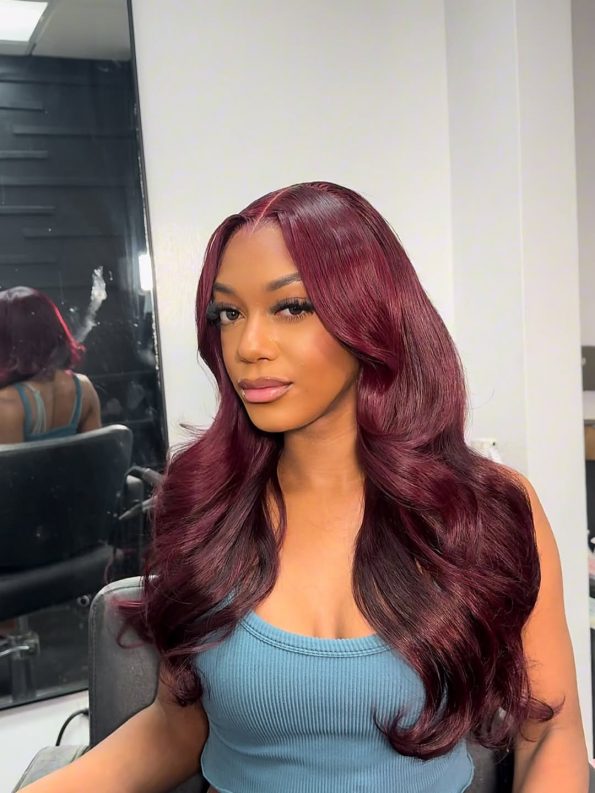 162 reviews for Dark Burgundy 13×4 Body Wave Hd Lace Frontal Wigs For Black Women 180% Density