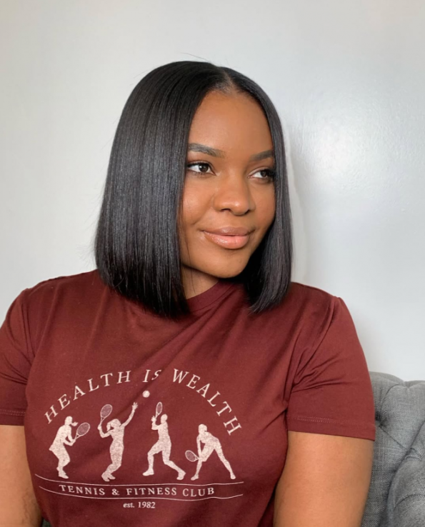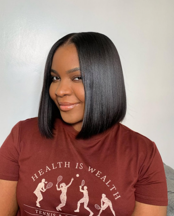 This wig is perfect for bad hair days. Just grab it put it on and go. When I received it in the mail I simply cute the lace with an eyebrow razor blade from my local beauty supply store. The wig came with a tan wig cap. I did flat iron just a little so that the bob wasn’t to blunt. The hair is very light and soft. I didn’t not use any glue on the install and I didn’t do the baby hairs. Overall it’s a great purchase for the price
